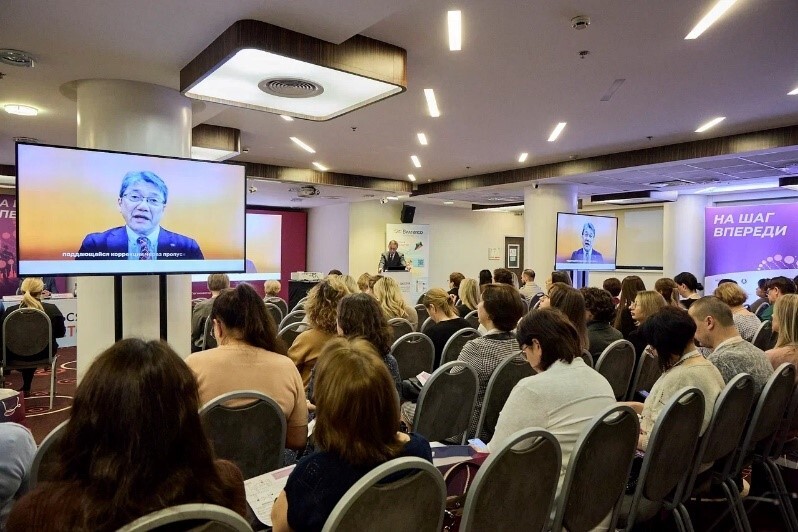 «Уважаемые коллеги. Сегодня уже в восьмой раз за последние несколько лет я имею возможность поприветствовать вас лично на нашей традиционной осенней научно-практической Конференции, темой которой стали достижения всех прошедших проектов и наших встреч. «На шаг впереди» – то преимущество, которое дано нам, благодаря упорному труду, профессионализму, новейшим технологиям и препаратам. И все же многие вопросы еще не решены. Но мы готовы – готовы обсуждать, решать, искать истину и идти вперед» - так Дмитрий Владимирович начал VIII конференцию Ассоциации «НЕОМИО.