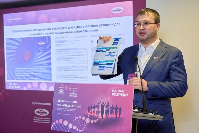 С особой гордостью был представлен новый проект Ассоциации – «Сборник учебно-методических руководств шкал двигательного развития для пациентов с нервно-мышечными заболеваниями с видеоматериалами», который уже сейчас доступен в новом разделе личного кабинета на портале «НЕОМИО». Участие в этом проекте приняла команда специалистов из НИКИ педиатрии и детской хирургии им. ак. Ю.Е. Вельтищева ФГАОУ ВО РНИМУ им. Н. И. Пирогова Минздрава России. Уникальные материалы и обучающие видео проекта доступны в личном кабинете в разделе «Шкалы» всем зарегистрированным пользователям портала Ассоциации «НЕОМИО» https://neomyo.ru
